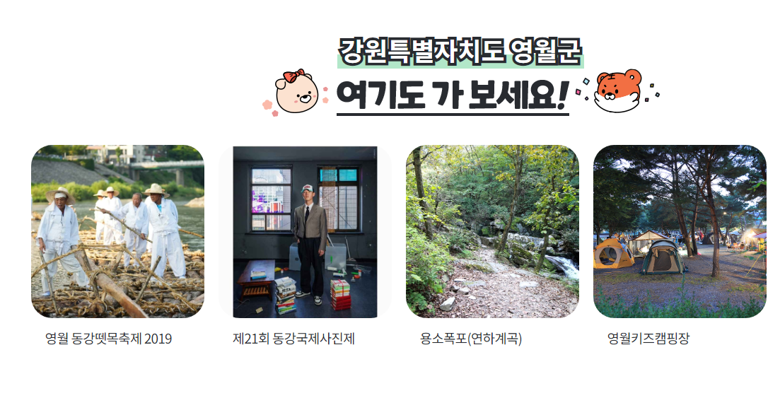 (1)영월군은 지역이 동서로 넓게 위치하고 있어 이동 동선을 미리 계획하고 방문해주시면 편리하게 여행할 수 있어요.