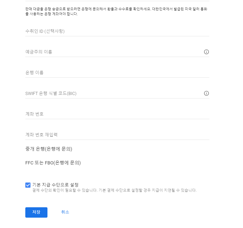 (4)새 은행송금 세부정보 추가를 클릭하시면 아래 정보입력란이 나오게 됩니다.