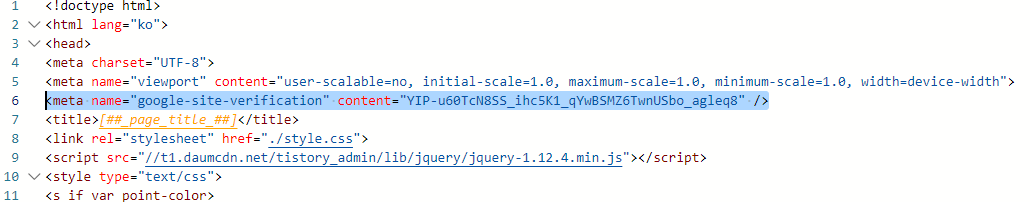 복사를 하셨으면 우리의 티스토리에 메타테크를 복사 하셔야합니다
