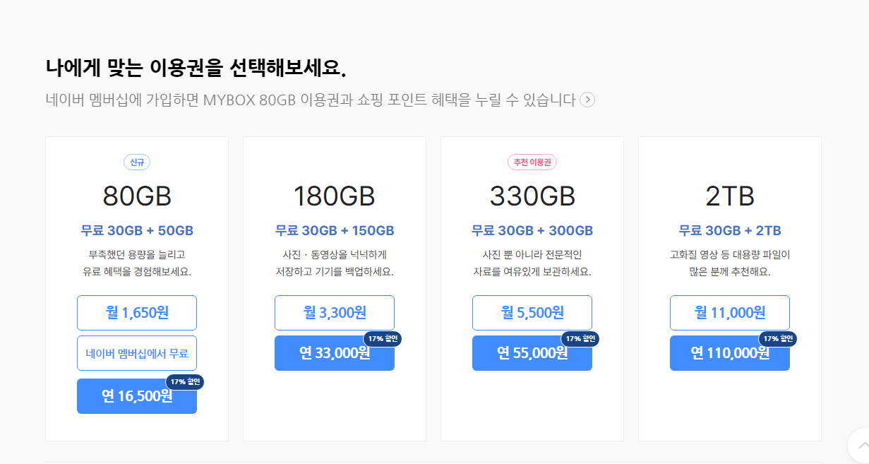 4.네이버마이박스 유료가격은 어떻게 되나요?