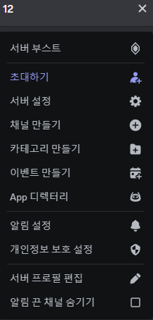사람 초대하기나, 서버 설정, 서버 만들기 등이 있어요~