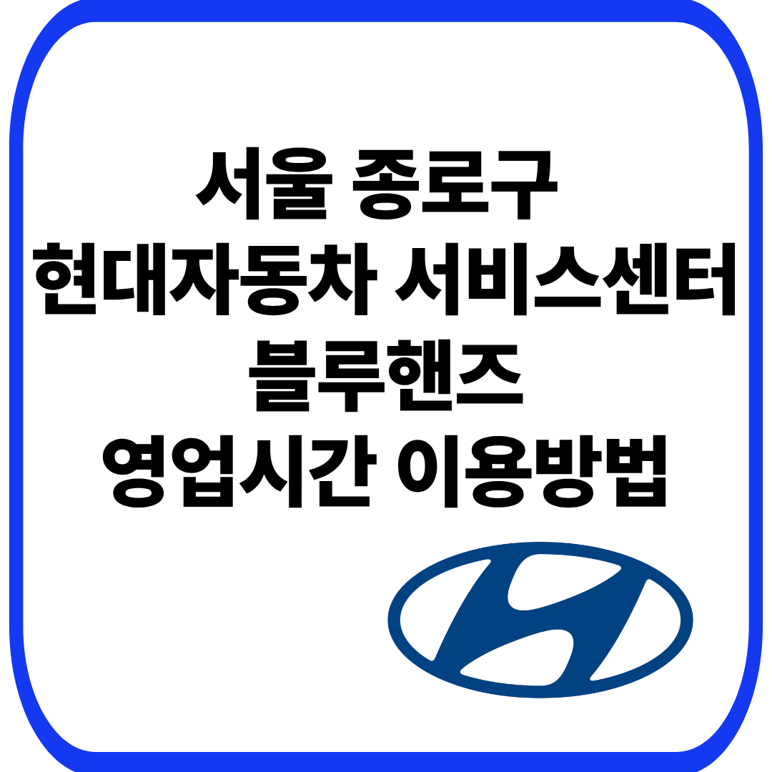 서울 종로구에는 현대자동차 공식 서비스센터인 블루핸즈(Blue Hands)가 총 4곳 운영되고 있습니다.