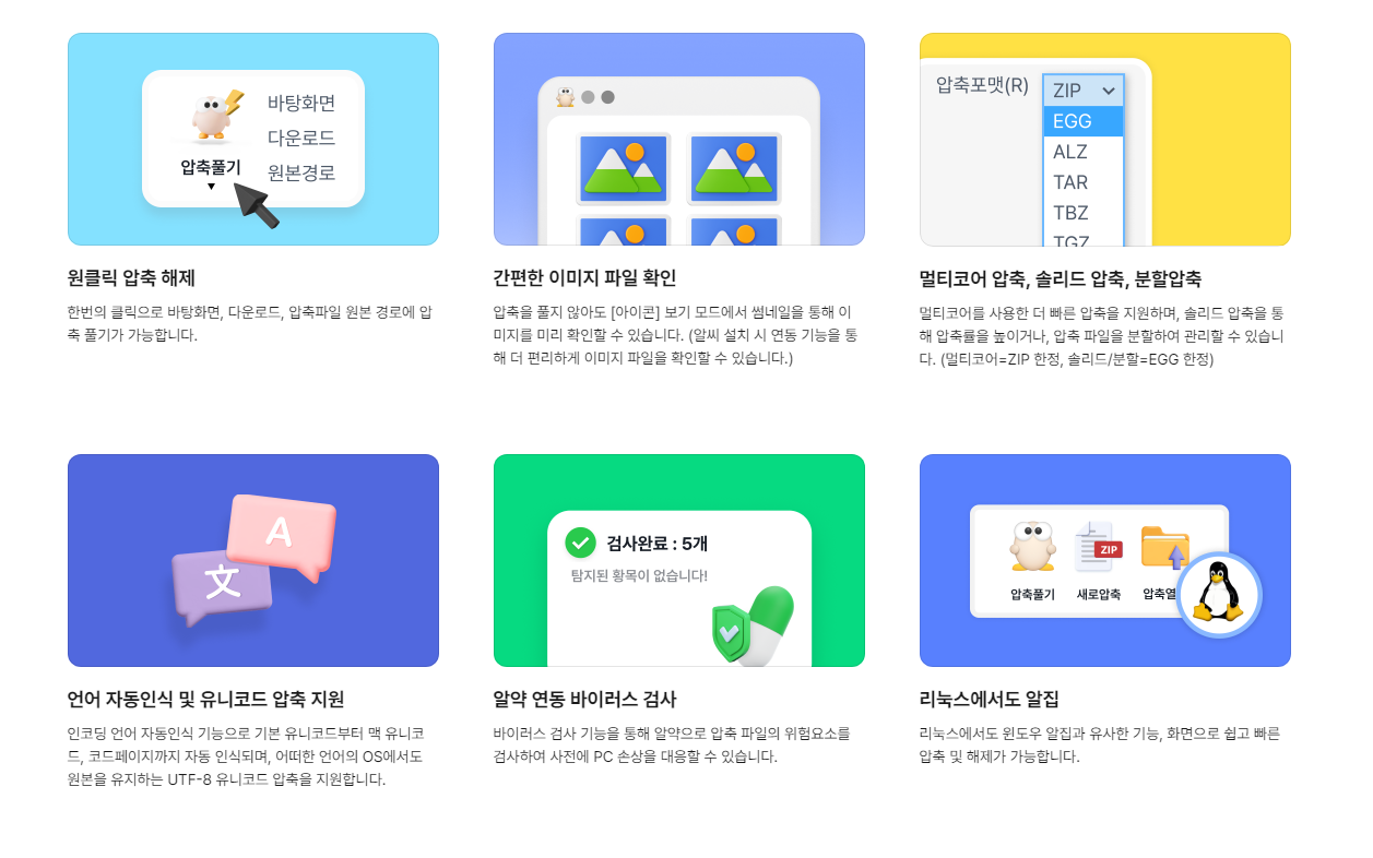 알집의 주요 기능을 소개합니다.