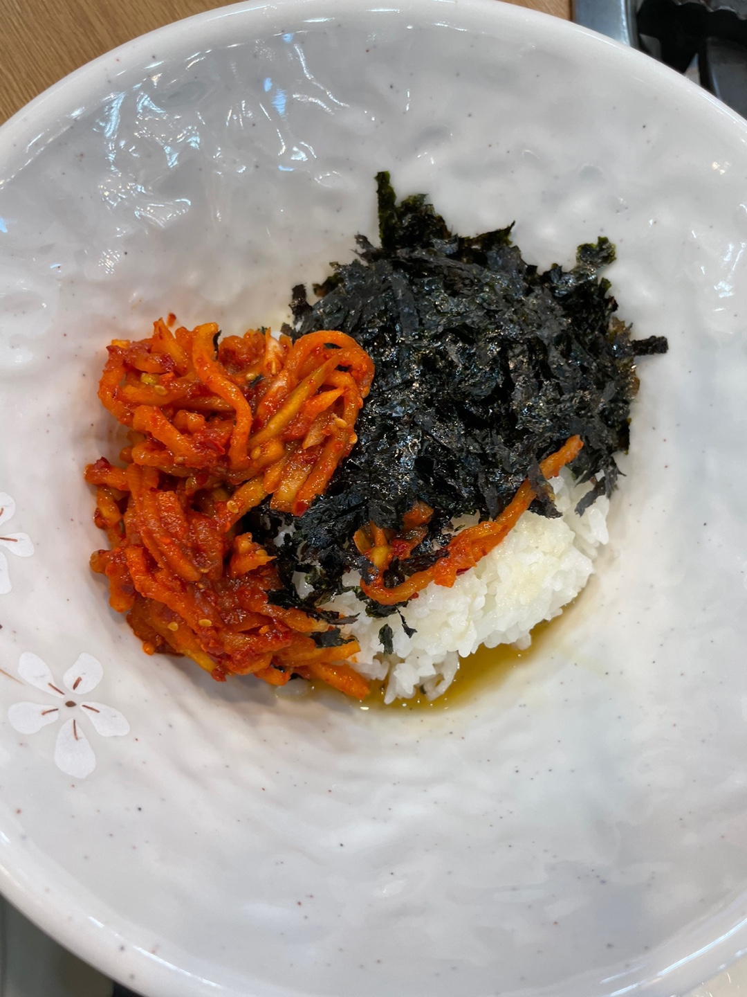 3.면을 뒤적이며 2~3분 정도 익히고 김치를 얹어 맛있게 먹는다