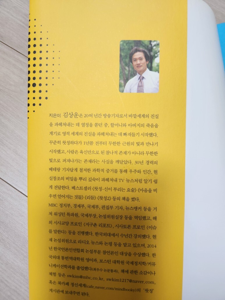 책의 저자는 30년 경력의 베테랑 기사로 철저한 과학적 증거를 통해 우주와 인간,현실창조의 비밀을 뿌리 깊숙이 파헤쳐내 tv 뉴스처럼 알기쉽게 전달하고 베스트셀러