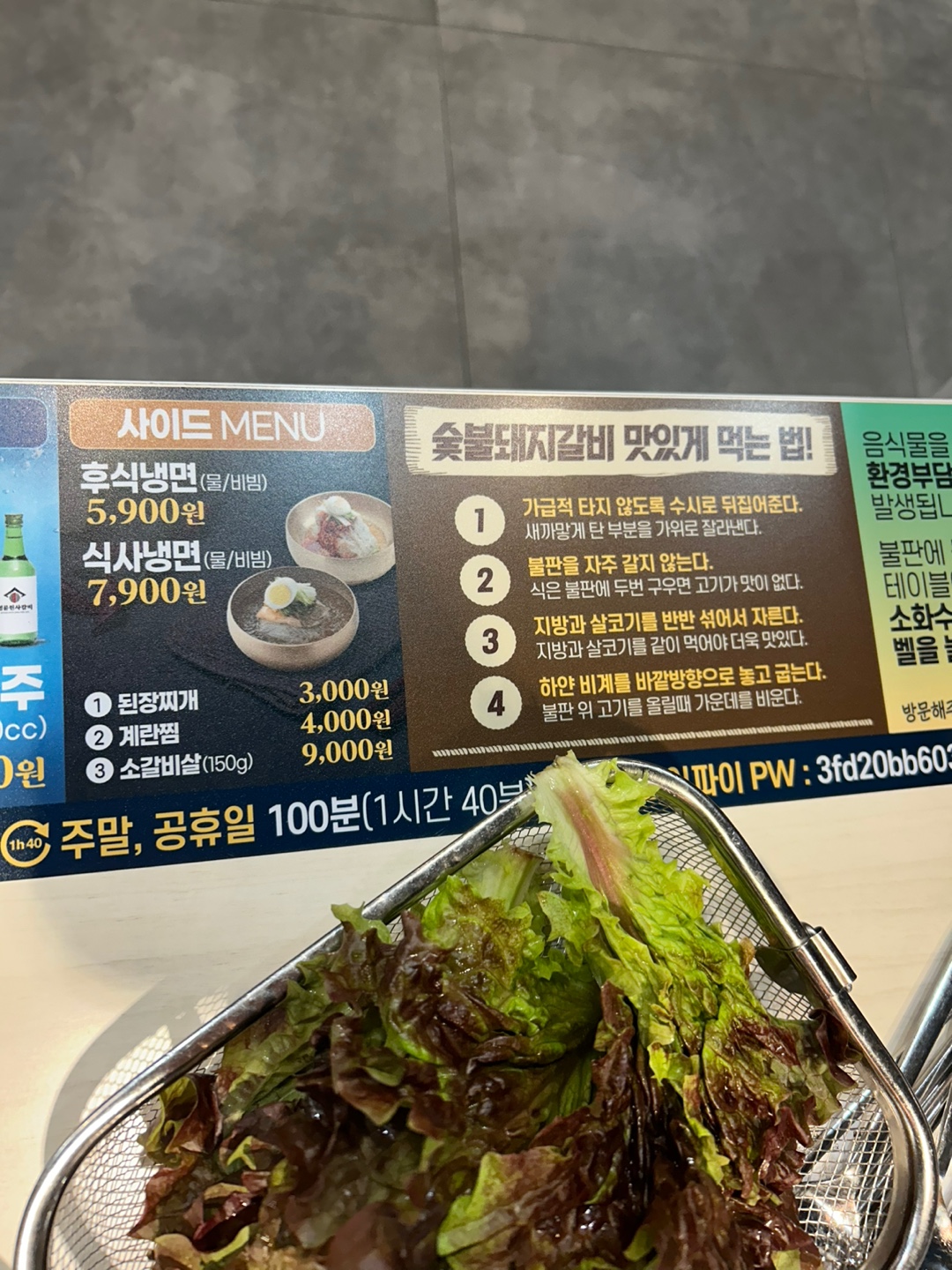 사이드메뉴도 정말 기가 막힙니다. 호텔 부럽지 않더라고요 다먹고 나서 야식 냉면도 깔끔하고 맛있었어요