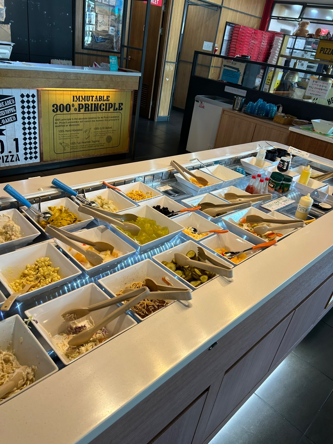 (2)피자뿐아니라 샐러브바와 커피 아이스크림까지 즐기실 수 있습니다.