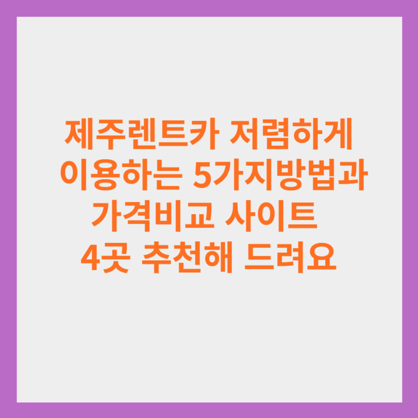 제주렌트카 저렴하게 이용하는 5가지방법은?