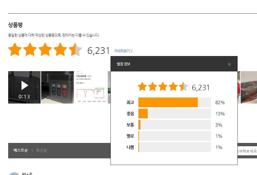 현재 리뷰가 6,233개 달려 있고 평정은 아래 이미지 보시면 바로 확인 가능하세요