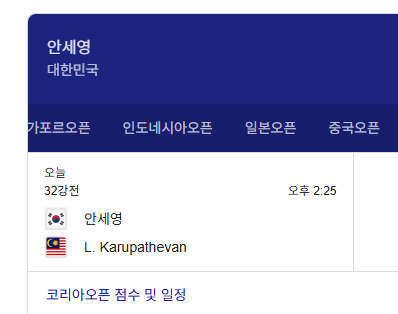 안세영 선수는 이번 2025 코리아오픈 32강에서 말레이시아의 렛샤나 카루파테반 선수(세계 37위)와 맞대결을 펼칩니다.