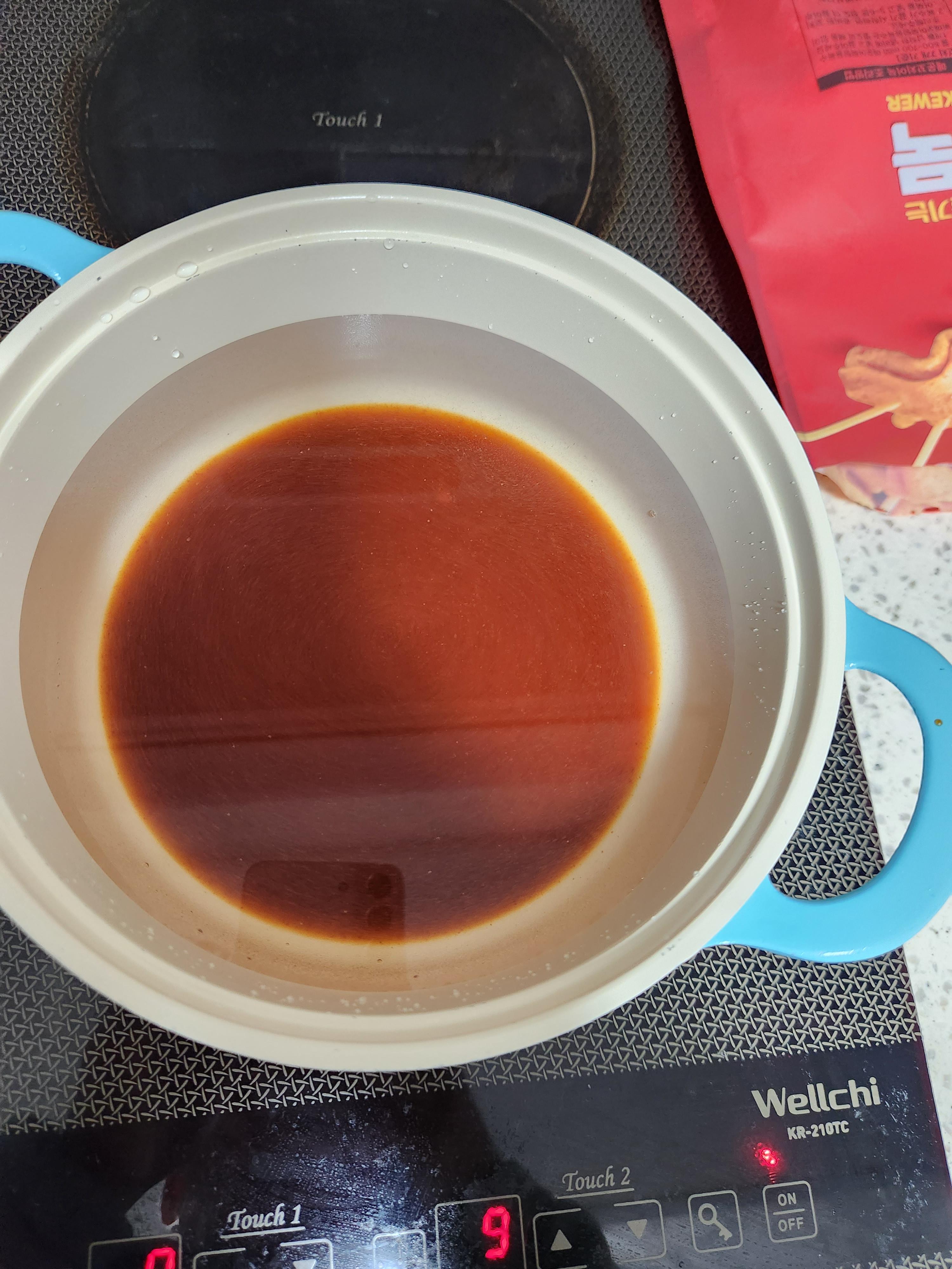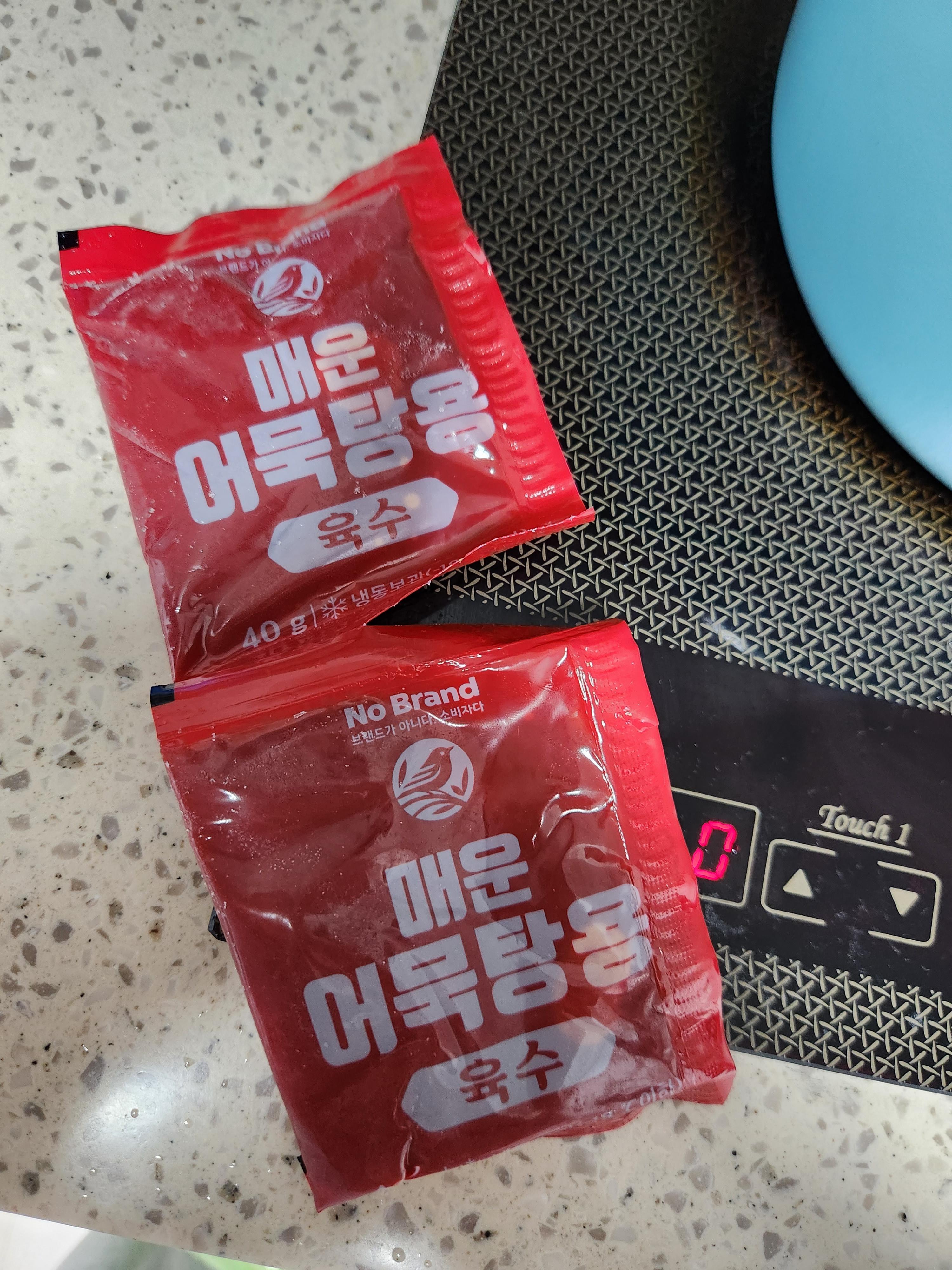 600ml 정도 물붙고 어묵타 육수를 넣고 5~6분정도 팔팔 끊여주세요