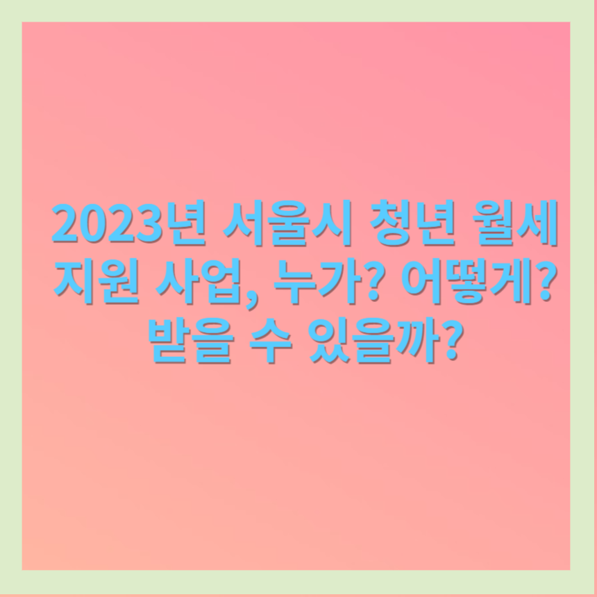 1.서울시 청년월세지원, 그것이 무엇인가?