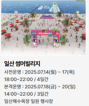 - 썸머빌리지: 해변 휴게 공간, 전시 및 체험 부스 운영