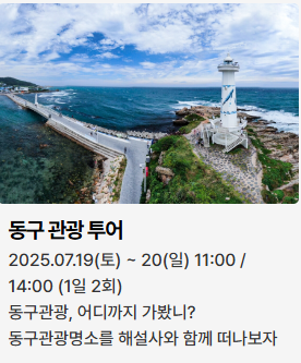 - 동구 관광 투어: 울산 동구의 명소를 버스로 탐방 (7월 19~20일, 1일 2회, 사전 접수)